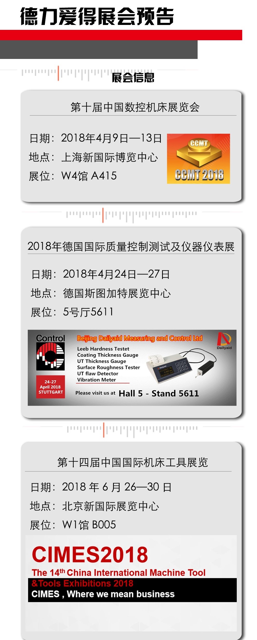 2018年是互相交流,共同進(jìn)步的一年。德力愛得將會如期參加以上展會,屆時歡迎